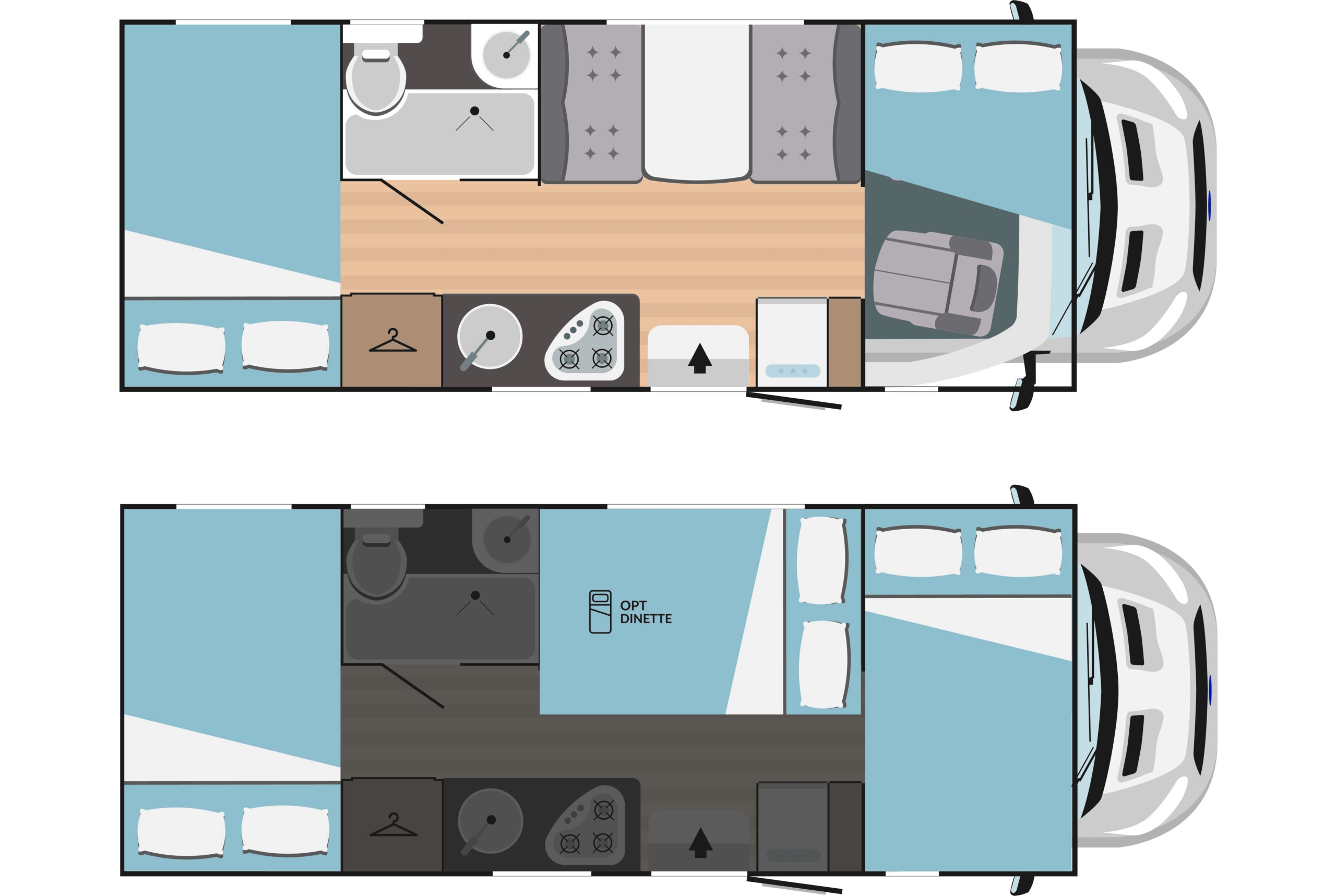 | Liczba łóżek | 2 os. + 2 os. + 2 os. (opcja) |